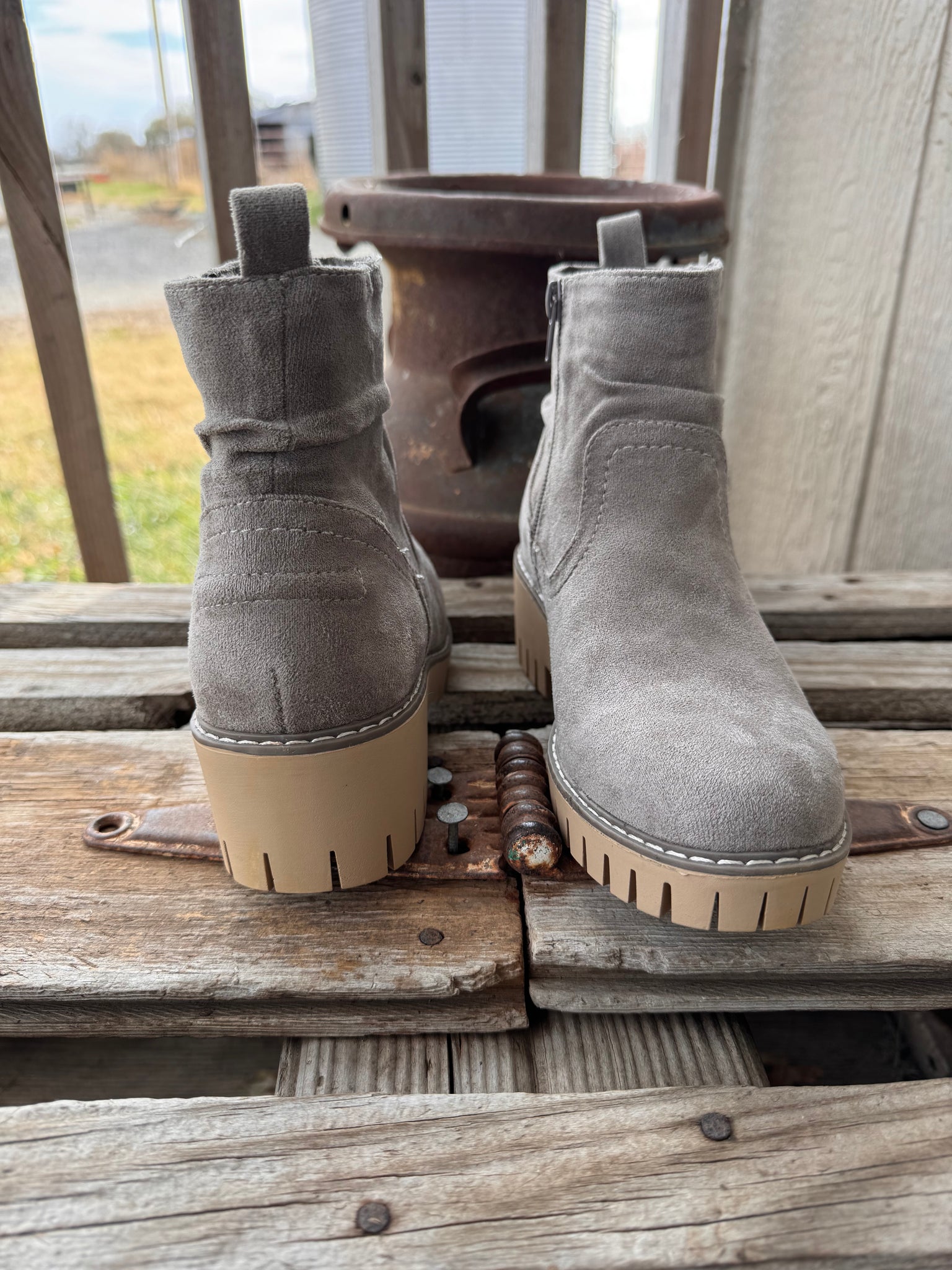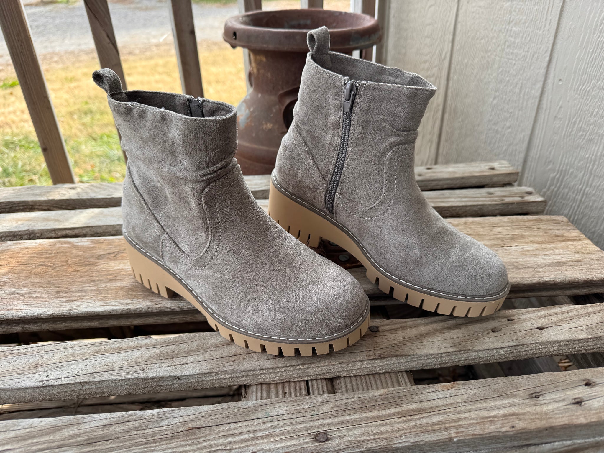 Improve your footwear with these trendy booties! The slouched suede upper gives a casual yet chic look while the cushioned footbed provides comfort for all-day wear. The lug sole and 1 3/4" heel give added traction and height. Perfect for fall & winter outfits!