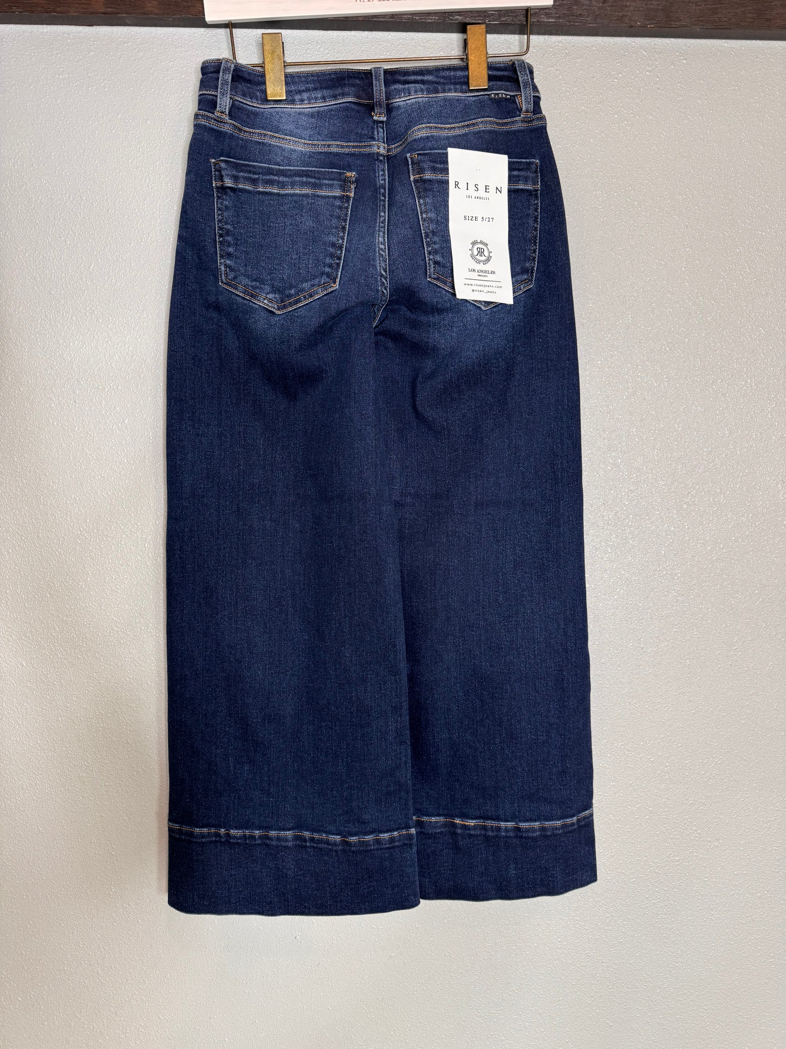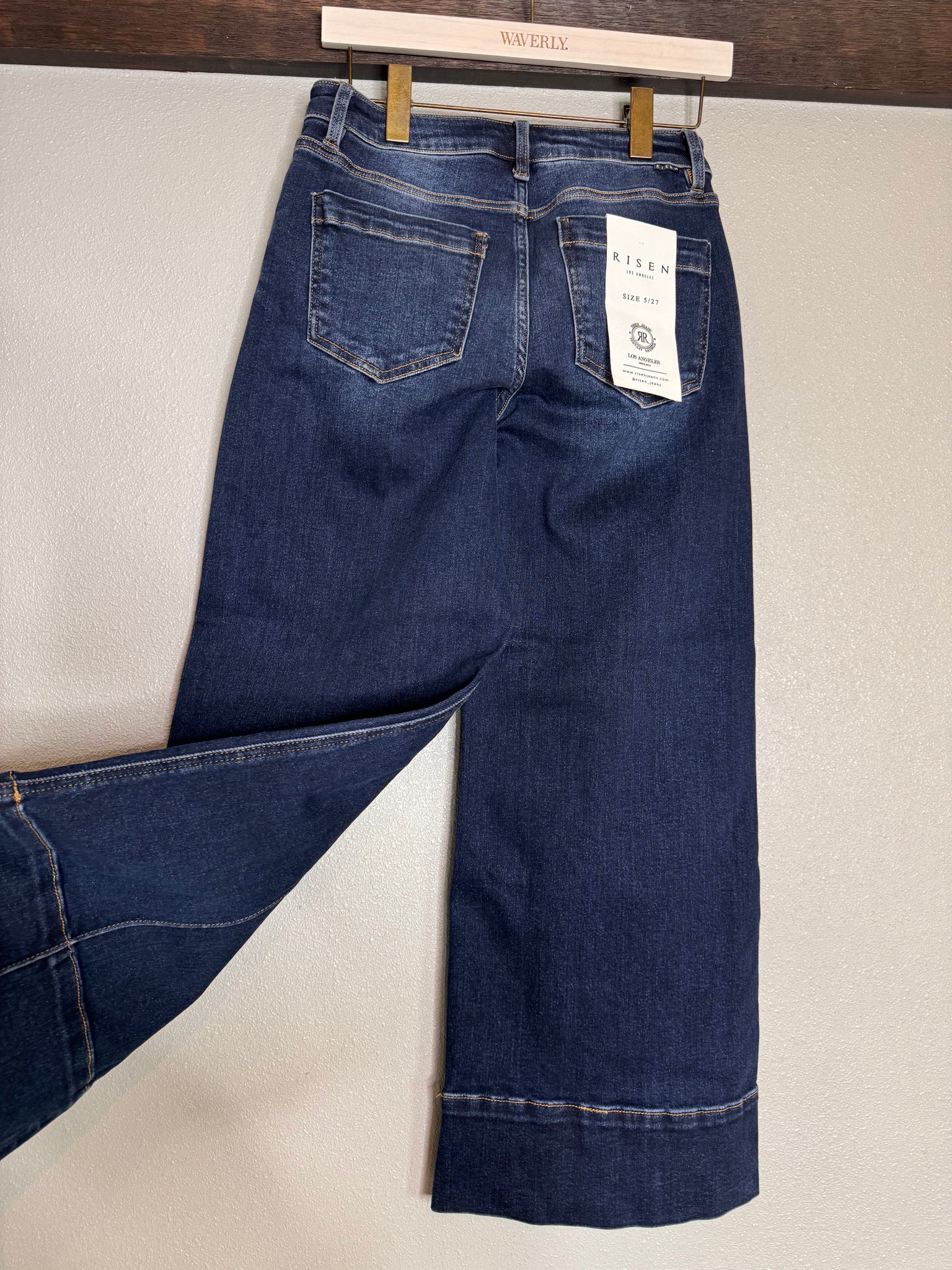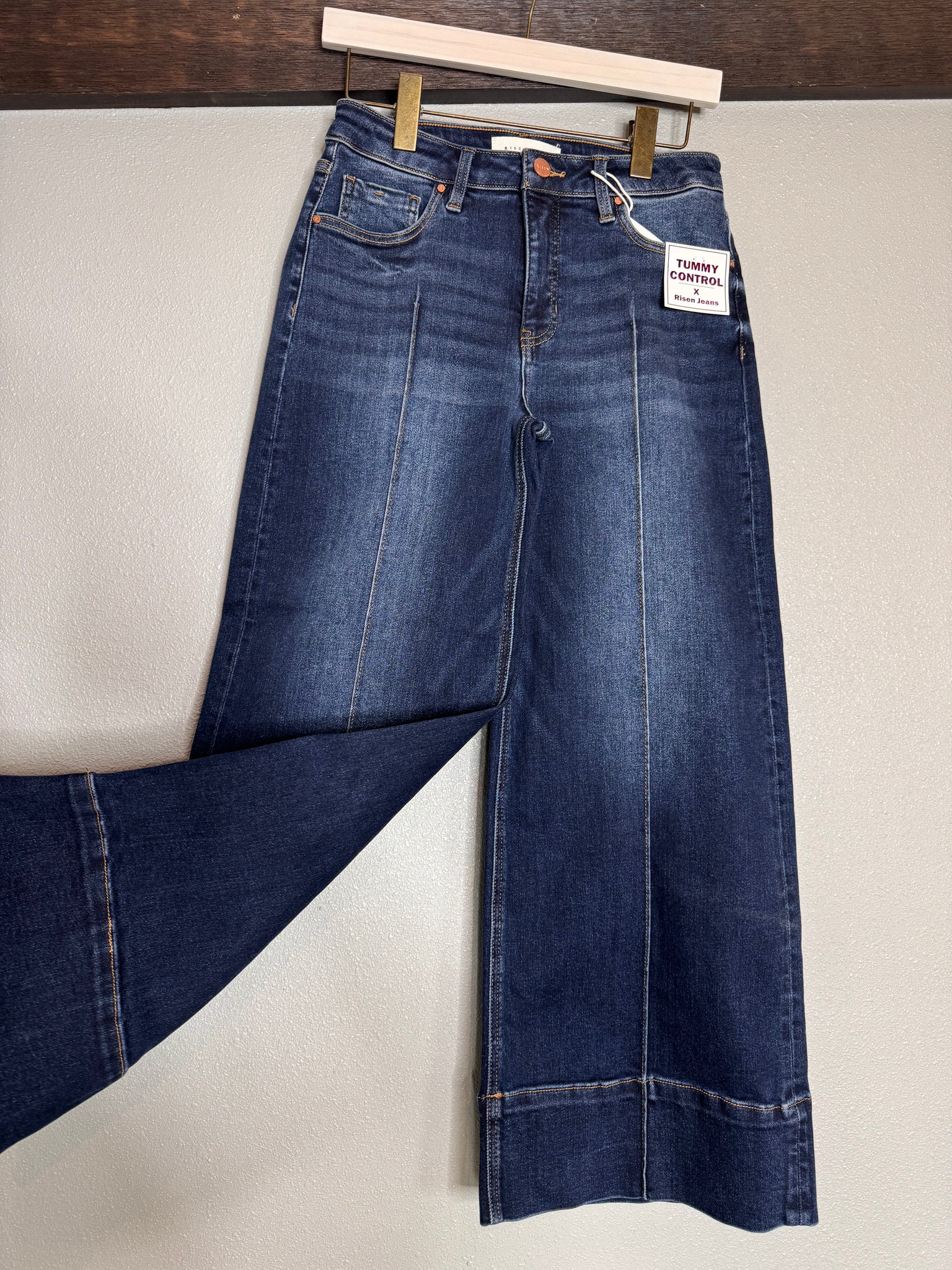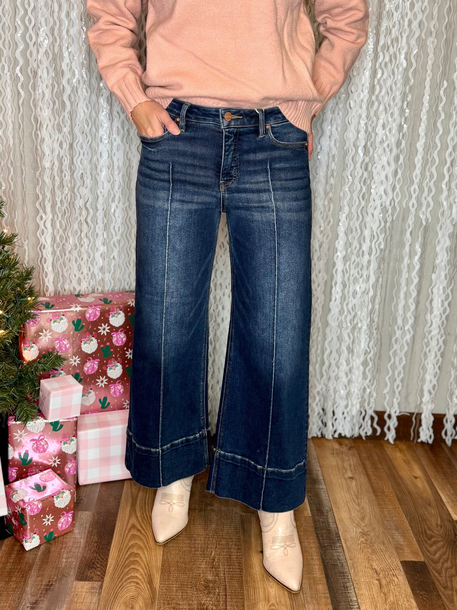 The Marlette Crop Wide Pintuck Jeans {Dark Wash}