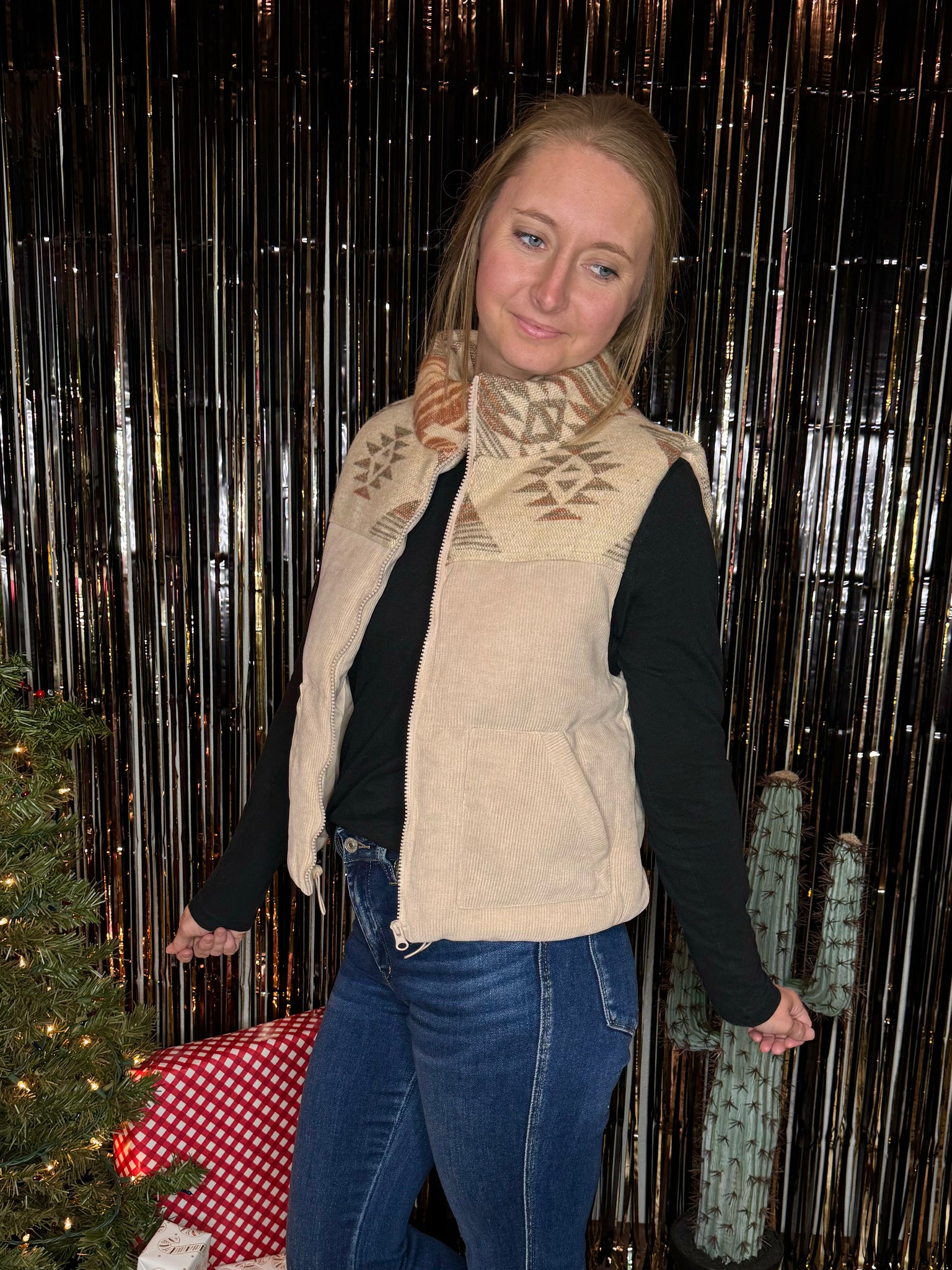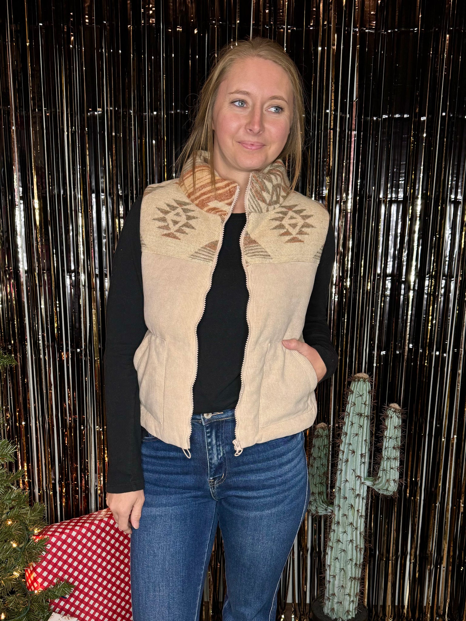 Meet your new go-to vest!! Stay warm and stylish with this Aztec yoke puffer vest. A perfect blend of comfort and cool, with bold patterns that make layering effortless!